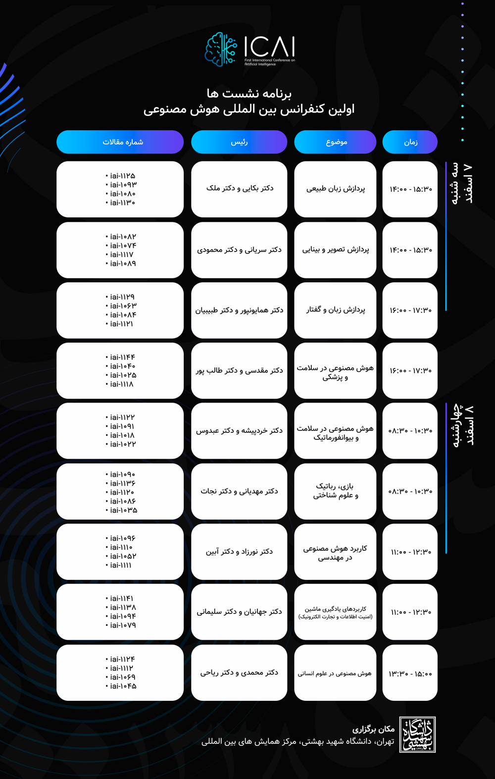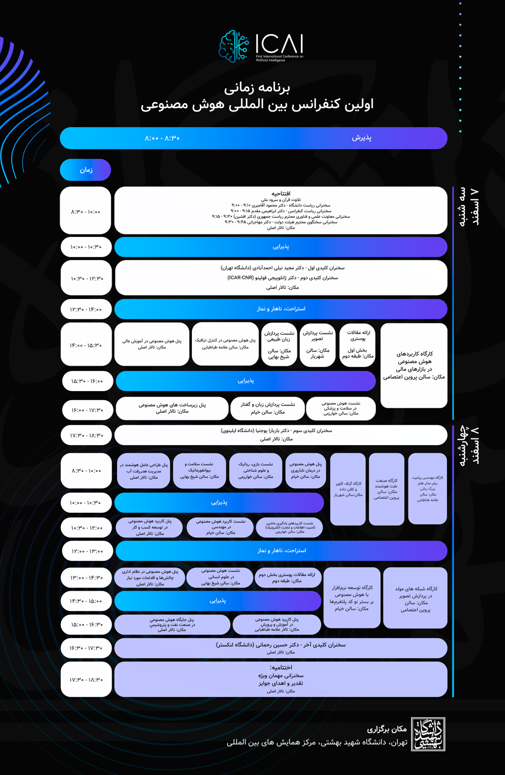به اطلاع شرکت کنندگان محترم کنفرانس میرسانیم که کنفرانس در تاریخ اعلام شده (۷ و ۸ اسفند) تحت هر شرایطی به شکل حضوری برگزار خواهد شد. همچنین برنامه روز کنفرانس در تصاویر زیر قابل مشاهده میباشد.