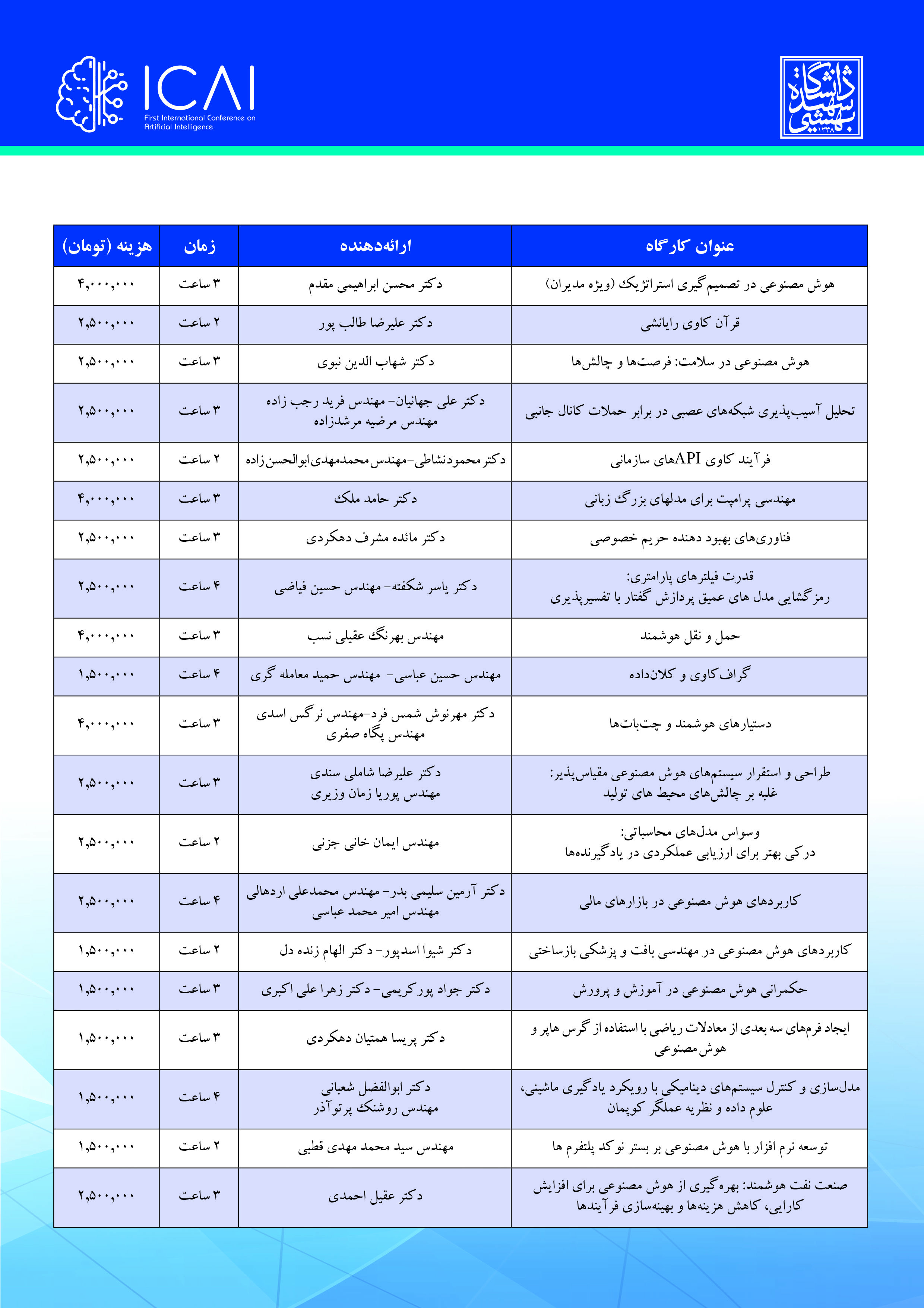لیست کارگاههای آموزشی