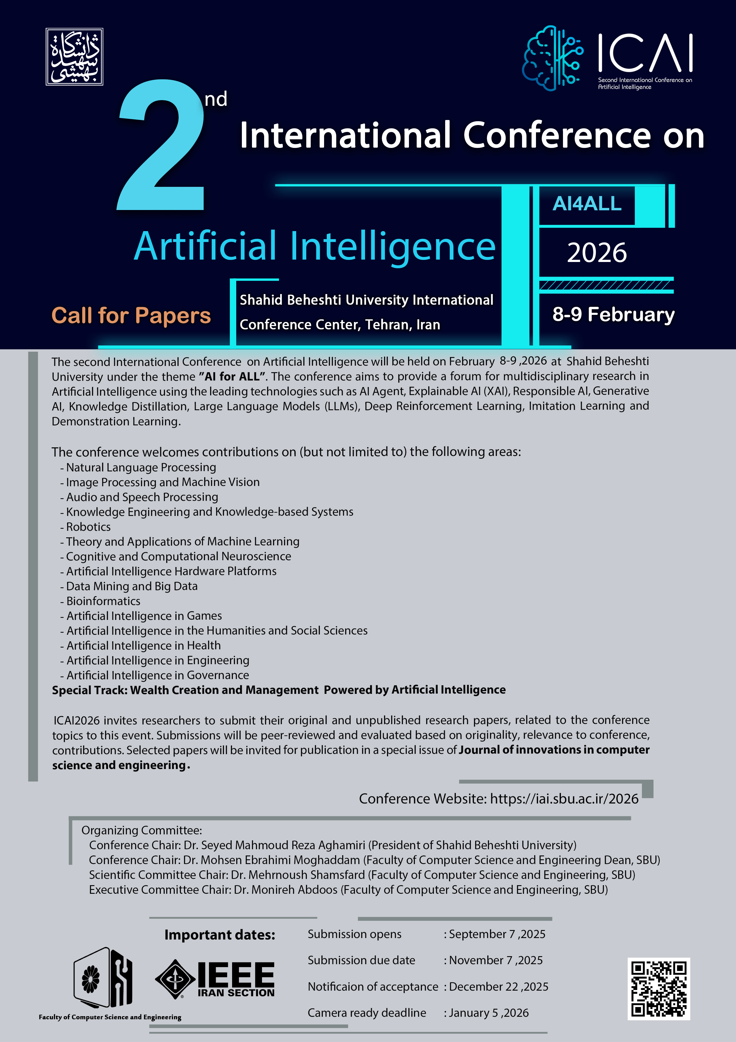 The 2nd International Conference on Artificial Intelligence (ICAI 2026) has successfully obtained official approval for the indexing of its papers in the IEEE Xplore Digital Library. Accordingly, all accepted papers of the conference will be indexed in the IEEE Xplore following the event.