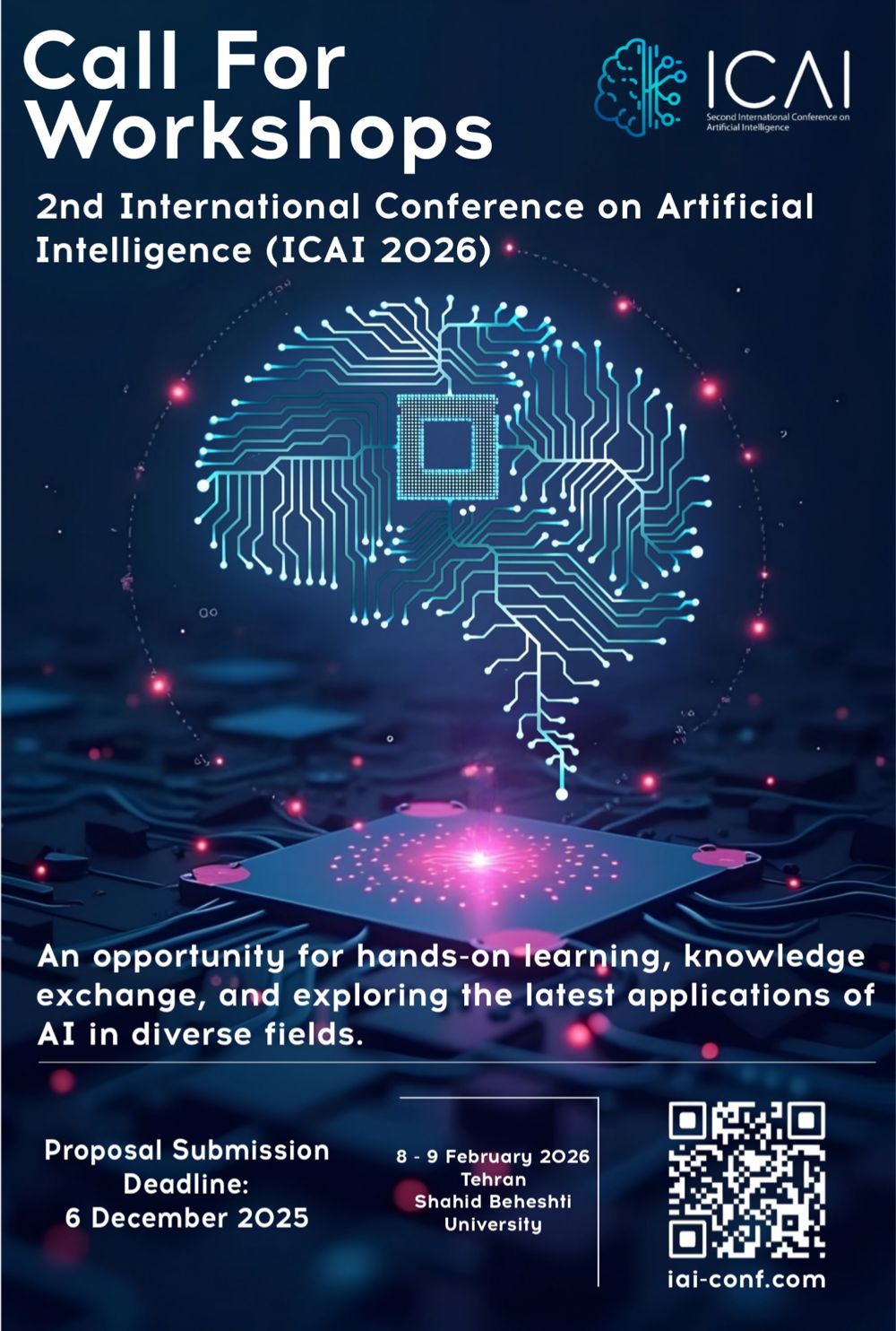 With the aim of providing a platform for the exchange of knowledge and innovative experiences in the field of Artificial Intelligence, all experts interested in conducting workshops related to the themes of the International Conference on Artificial Intelligence are invited to submit their proposals. Applicants are requested to complete the designated form and send their workshop proposal, along with the presenters’ CVs, to the email address below (with the subject line: "Workshop Proposal") no later than the deadline announced on the conference website.